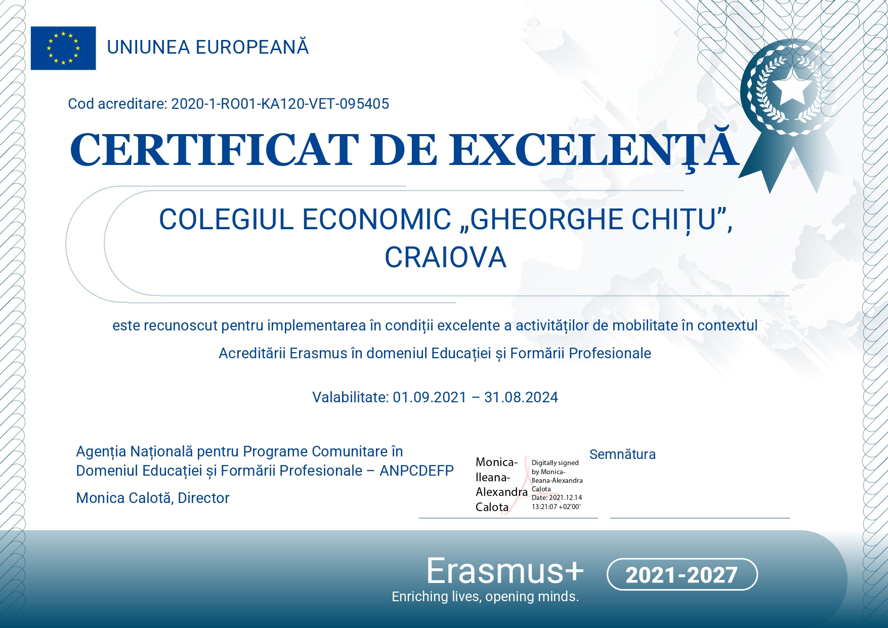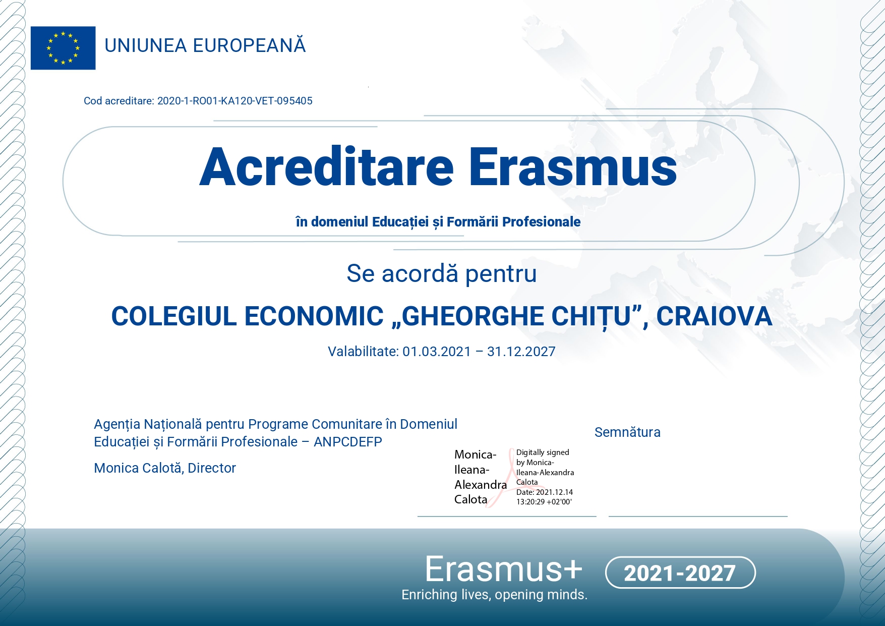 Înfiinţat în 1877, liceul urmăreşte calificarea forţei de muncă pentru domeniile economic, comerţ, alimentație și turism, capabile să se integreze socio – profesional şi să corespundă exigenţelor economiei de piaţă la standardele naţionale şi europene, asigurând servicii ce au la bază calitatea, performanţa, promovarea valorilor europene, pentru toţi participanţii în proces şi deschiderea spre învăţarea pe tot parcursul vieţii.
